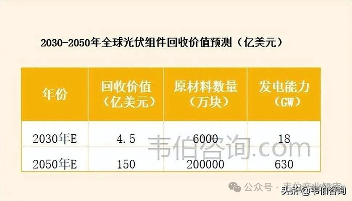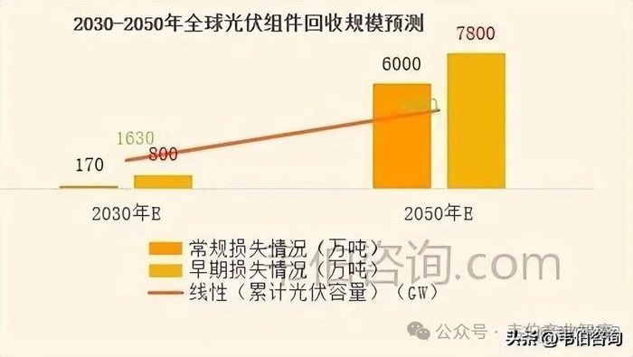 图表1:2030-2050年全球光伏组件回收规模预测Zoq太阳能光伏板回收处理设备_废旧光伏板回收设备_光伏板去边框机_光伏板去玻璃机_瑞赛克机械设备